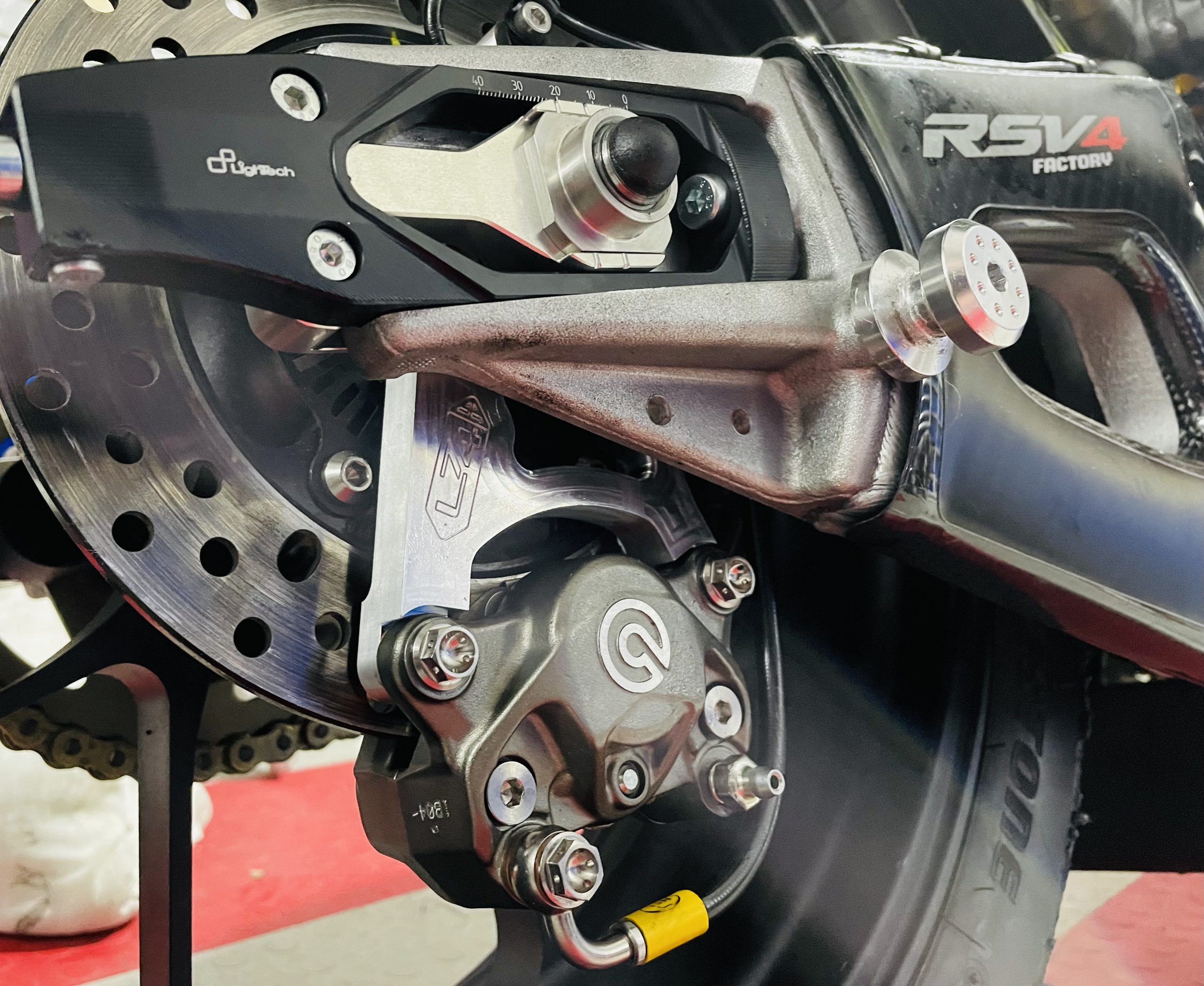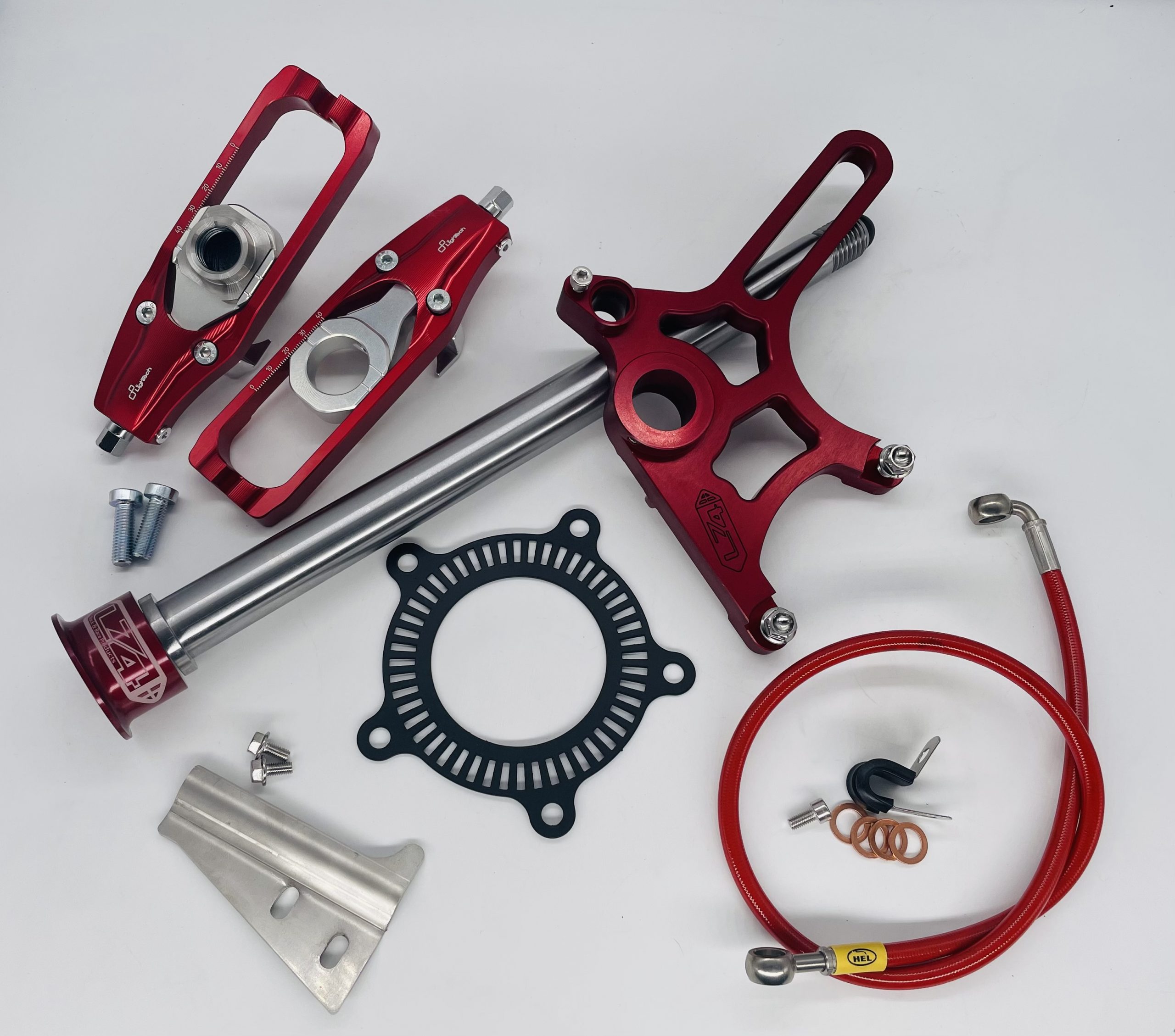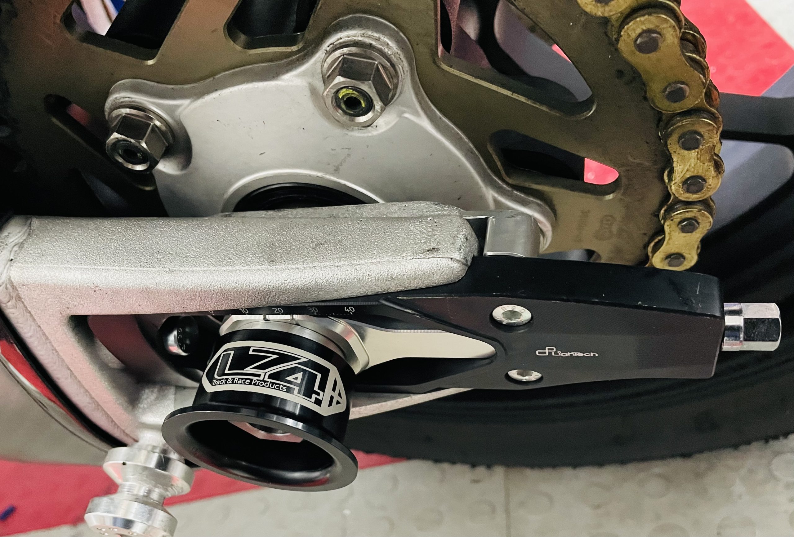 - New Lightech chain adjusters (modified) with pre fitted captive nut (Red or Black)