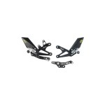 They are adjustable in height and backwards, offering multiple footpeg positions, which can be implemented with the aid of optional footpeg holders. Up to 3 high-quality bearings are integrated into the levers to withstand the most extreme stresses on the road, but especially on the track. The rearsets can be customized thanks to a wide range of accessories and spare parts.